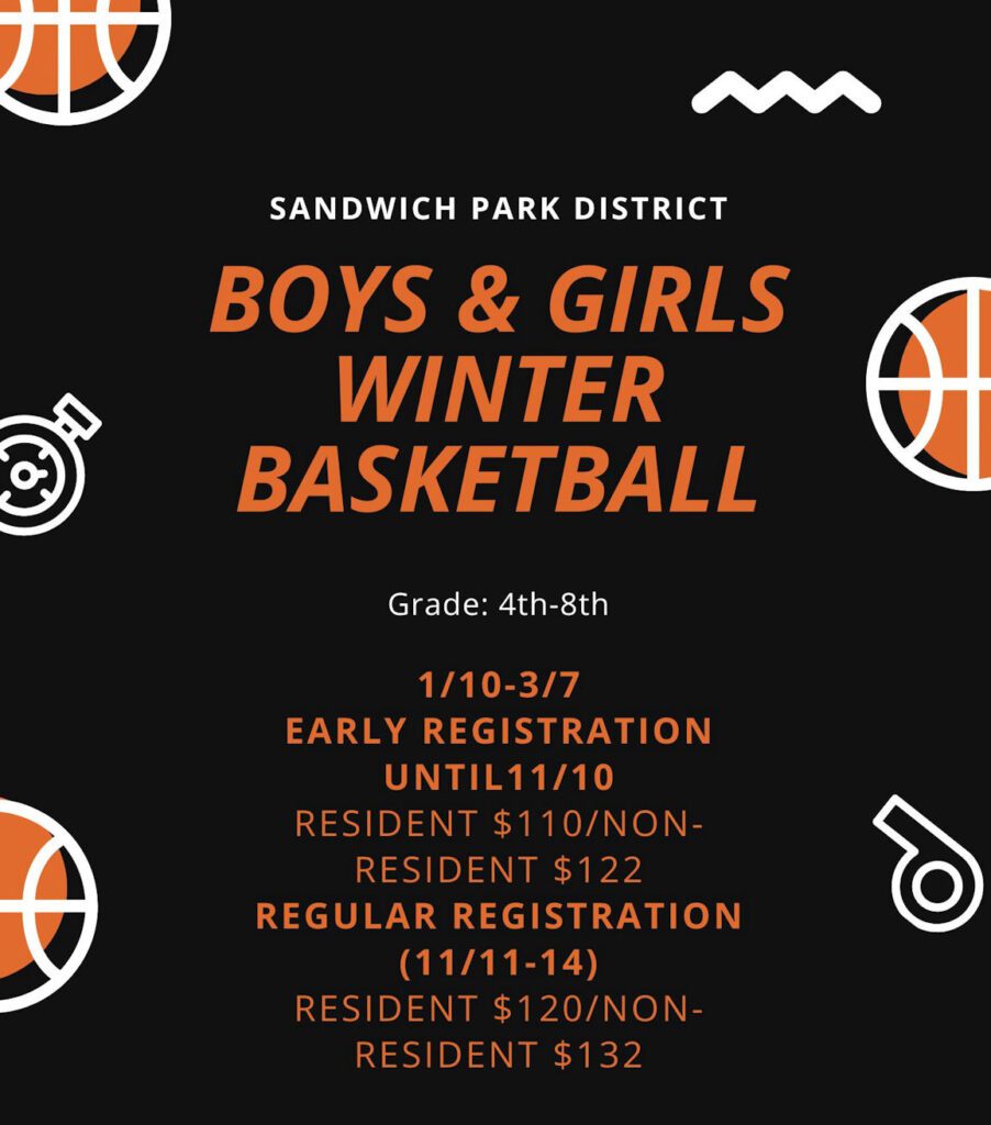 It’s that time of year again! Winter Basketball is right around the corner for boys and girls. Early registration is open until 11/10, and regular registration runs from 11/11-11/14. You can register by clicking the link below or by calling (815) 786-8044.