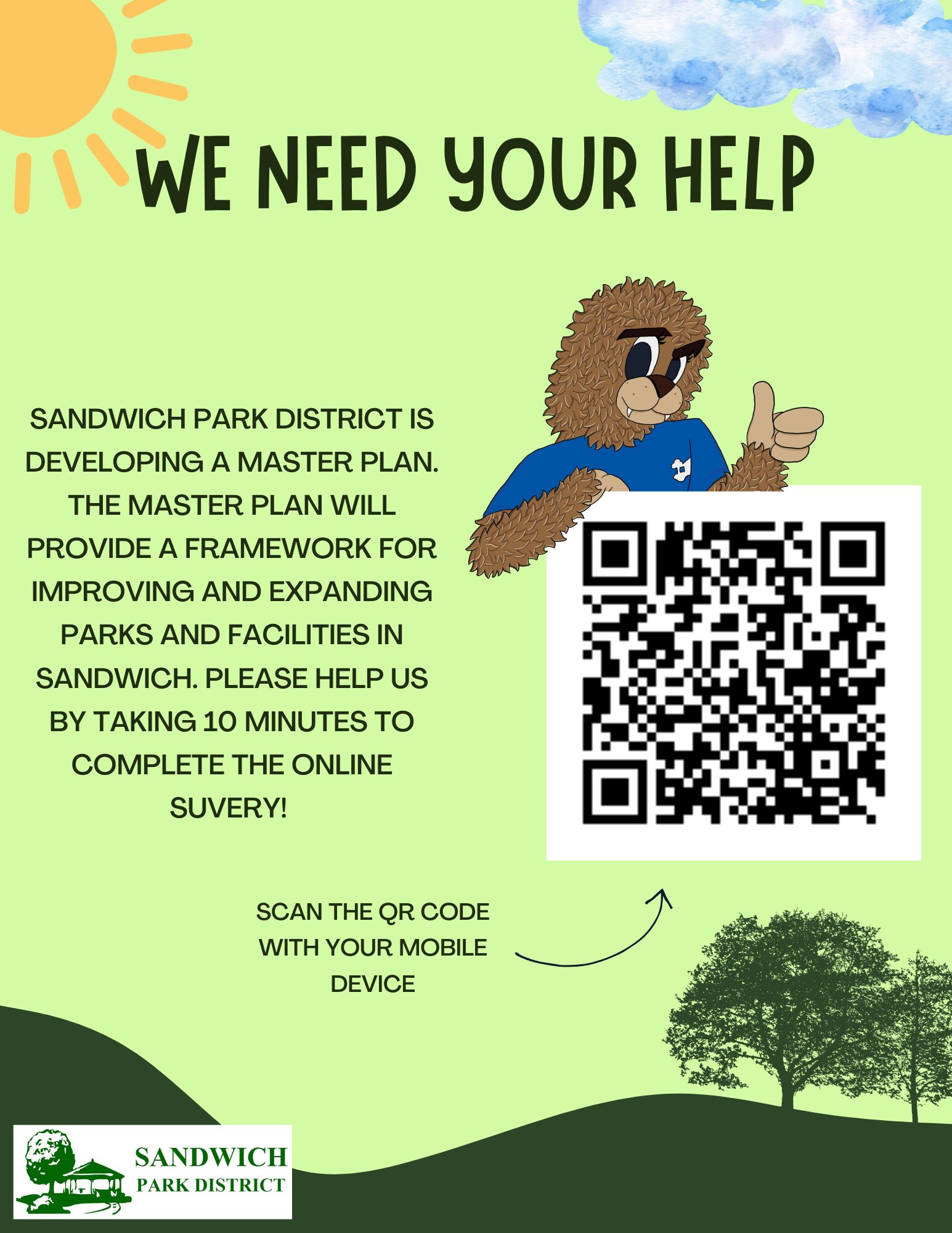 The Sandwich Park District is currently completing its 2026 Master Plan. We would greatly appreciate your time in filling out this survey to give us feedback on how we are doing and to help us plan your future parks and facilities. Attached you will find a link to our online survey. To prevent spam/bot responses we are requiring a name and email in order to fill out the survey. If you prefer to submit the survey anonymously, please click on the paper link below which will let you print the document at home. After filling it out, you can mail it to us or drop it off in our drop box at 1001 N. Latham St. Sandwich, IL 60548. We will also have paper copies located at the district office for your convenience. Survey Online Link: https://www.surveymonkey.com/r/8SBC397